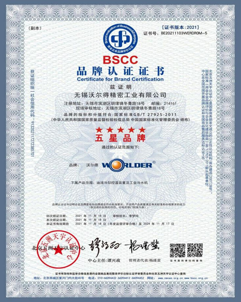 2021年11月公司通過(guò)了中國(guó)標(biāo)準(zhǔn)化管理委員會(huì)頒布的“標(biāo)準(zhǔn)GB/T27925-2011”品牌認(rèn)證,榮獲“五星品牌”。